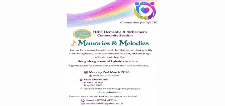 Please Join us for our next memories and melodies session Monday 2nd March 10:30am till 12:30pm. Bring along some old photos and lets spend some time reminiscing. Im going to see if I can...