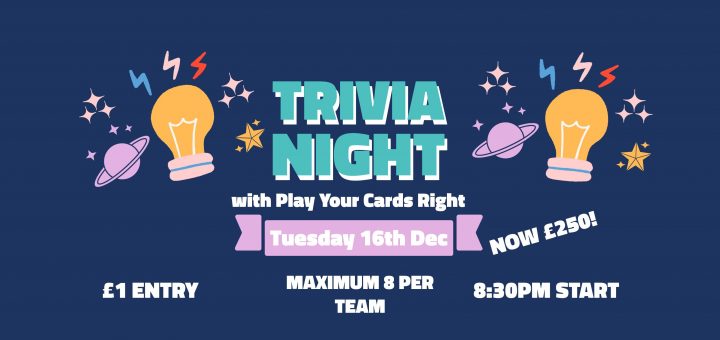 Put your knowledge to the test at our Trivia Night! Bring your friends, form a team, and see if you have what it takes to win! Play Your Cards Right is now at £250!!...