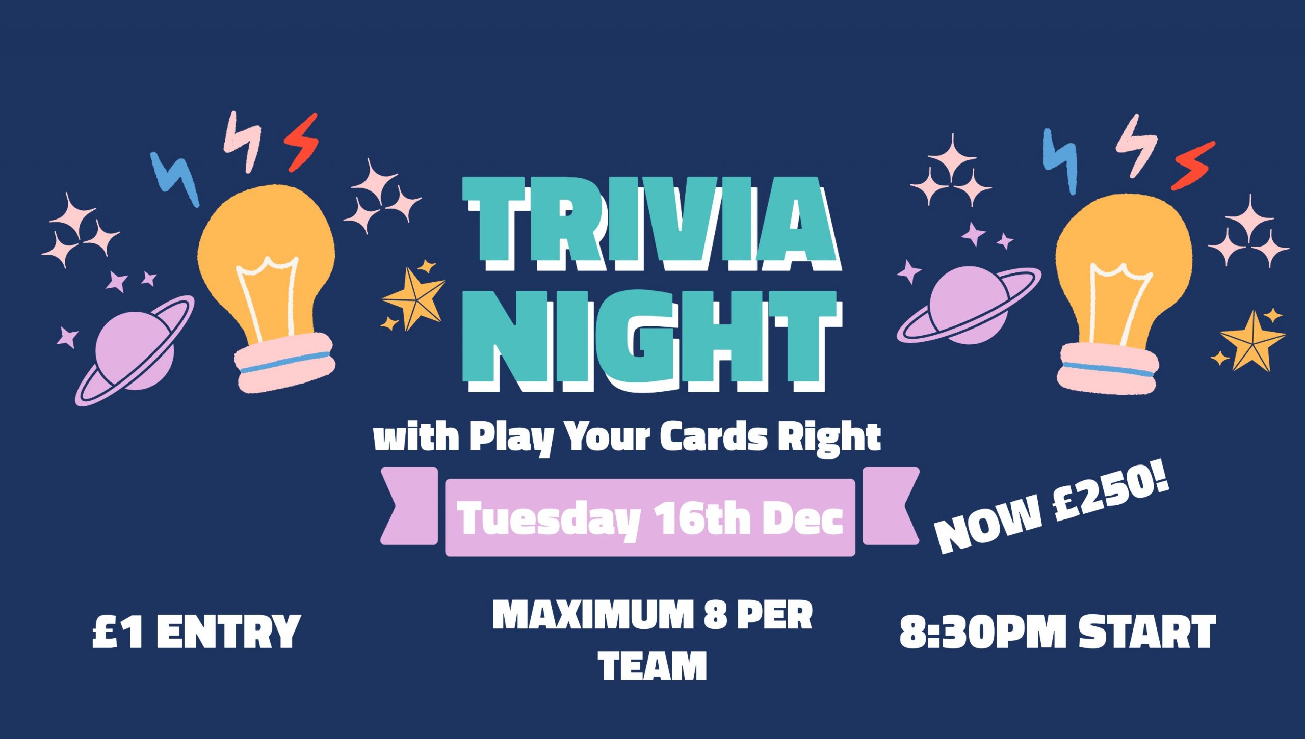Trivia Night – 16th December – 8:30pm in Porters Lounge